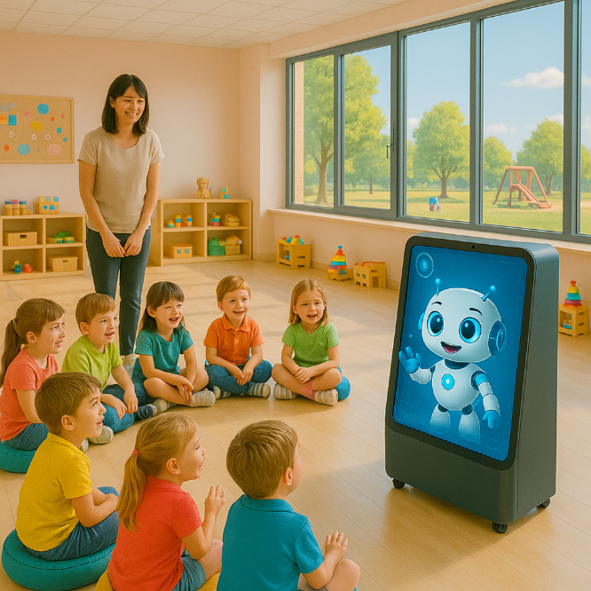 Bu akıllı sınıf arkadaşı, çocuklarla doğal diyalog kurarak onların yaratıcı düşünme becerilerini destekler, sosyal etkileşimlerini geliştirir ve ileri teknolojiyle iç içe bir öğrenme ortamı sunar.
